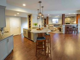 The three primary factors that determine a large budget basement build are area-size & amount of rooms, the materials used, and the bathroom, kitchen, and/or bar installs. The average time for a large multi-phase build is between 6 weeks and up to 3 months, depends on the complexity of your basement dimensions and materials used.